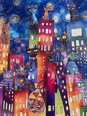 As a collage artist, I take slices of colored paper and random imagery to create new pictures punctuated with bright colors and simple themes. As the whole becomes greater than the sum of its parts, I marvel at the transformation.
